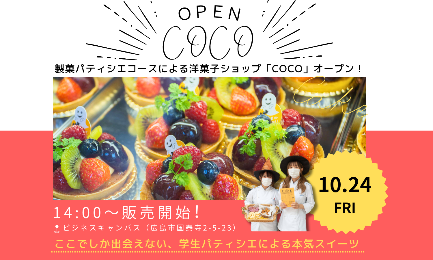 製菓パティシエコースの学生たちによる、洋菓子ショップがオープン✨学生が心を込めて作り上げた自慢の洋菓子をぜひご賞味ください!